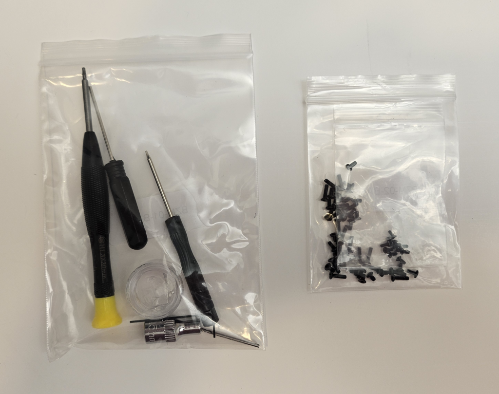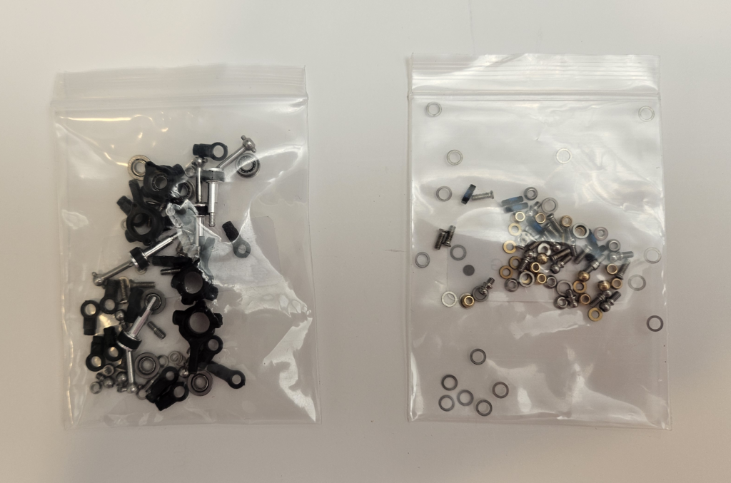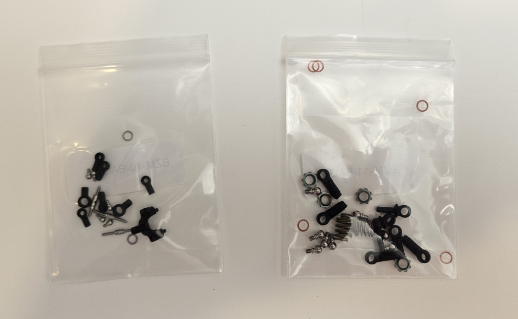 Like the MRX Master and MRV, the BZ Master comes in a small black box. Inside, you’ll find a number of bags with an assortment of parts. I’ve included pictures of the bags below.
